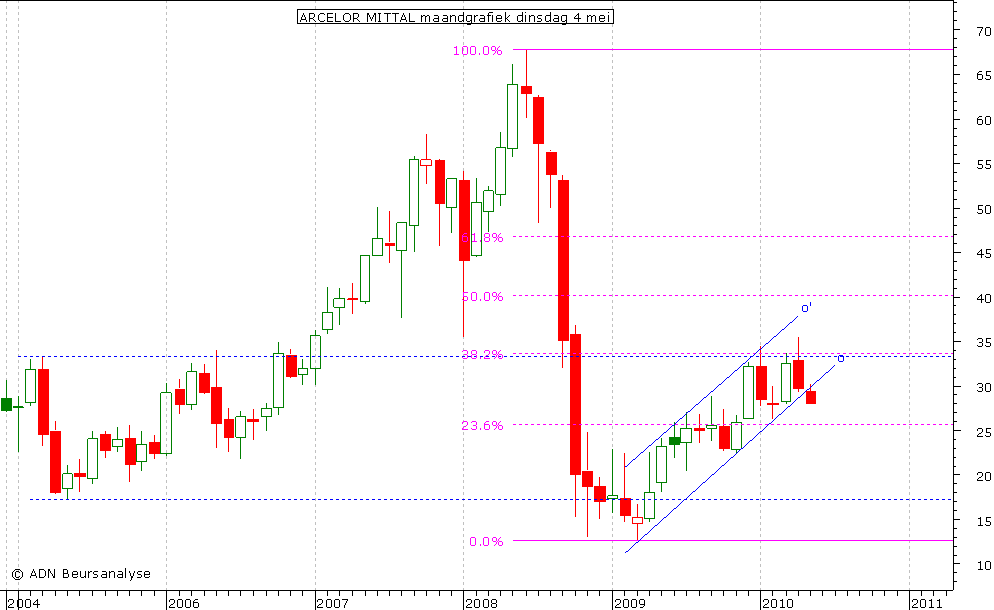 plaatste ik in de weekgrafiek Fibonacci lijnen over de stijging €12,57 -