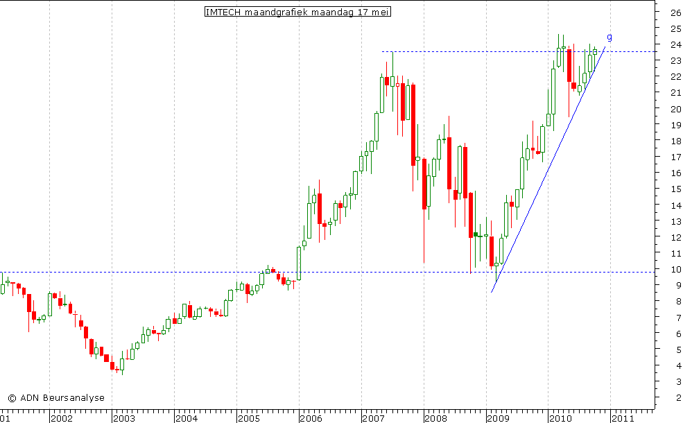 weerstandniveau rond €23,50 aan. Rond deze grens ontstond in 2007 een top