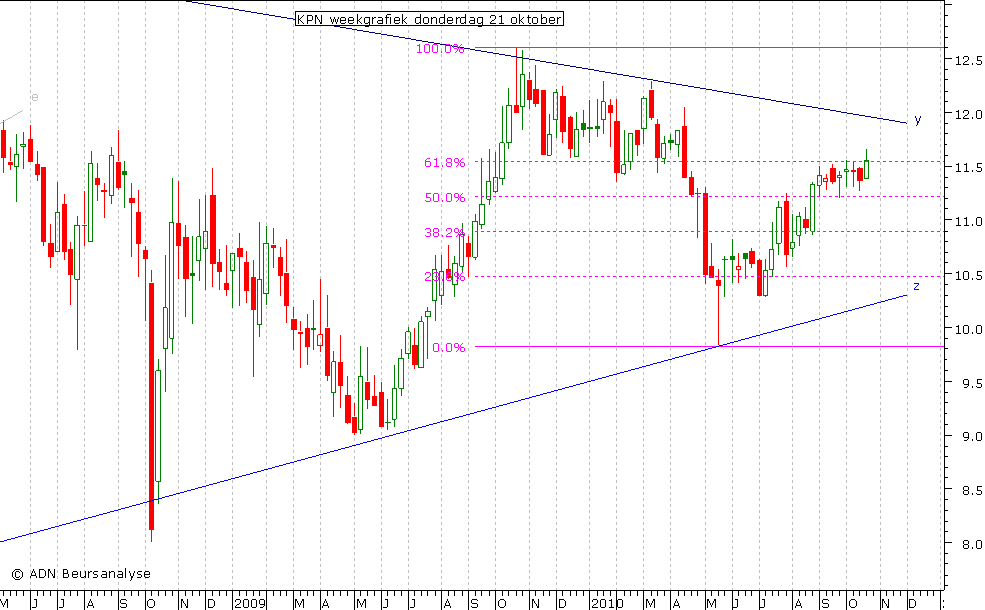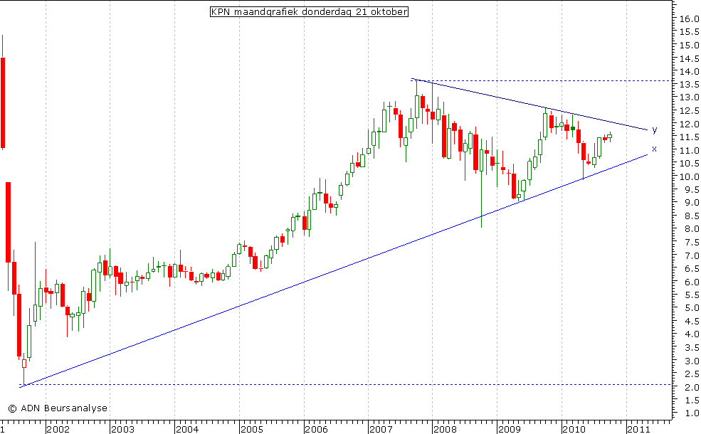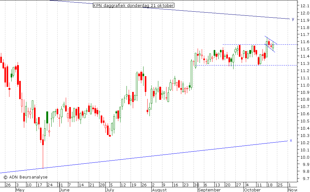 waardoor het onzeker is of KPN verder stijgt naar lijn y. Er kan hier