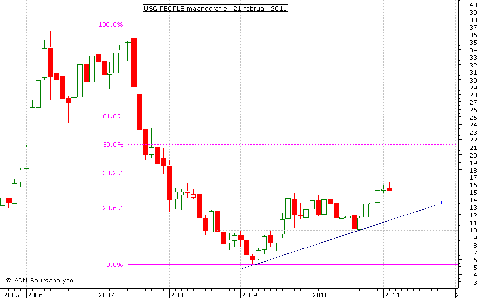 - De koers van USG People heeft vorige maand de stippellijn bereikt die rond