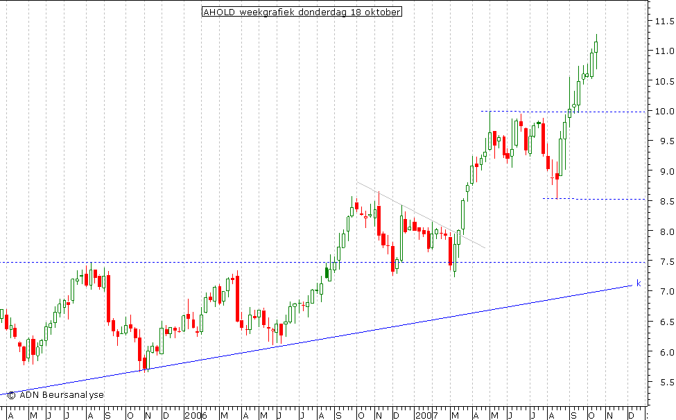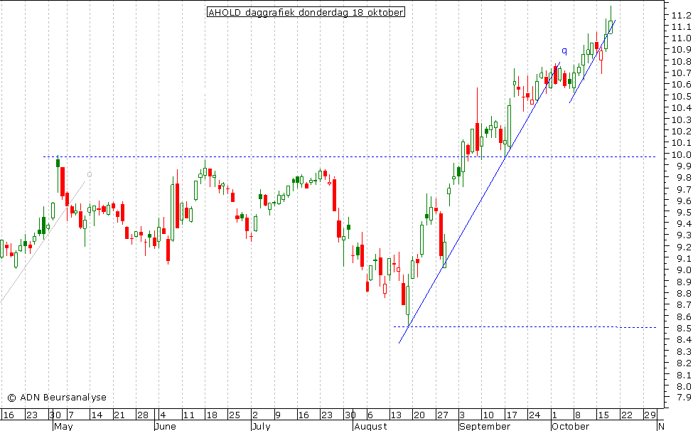 de vraag of Ahold deze maand boven €10,65 af zal weten te sluiten. Ik ben