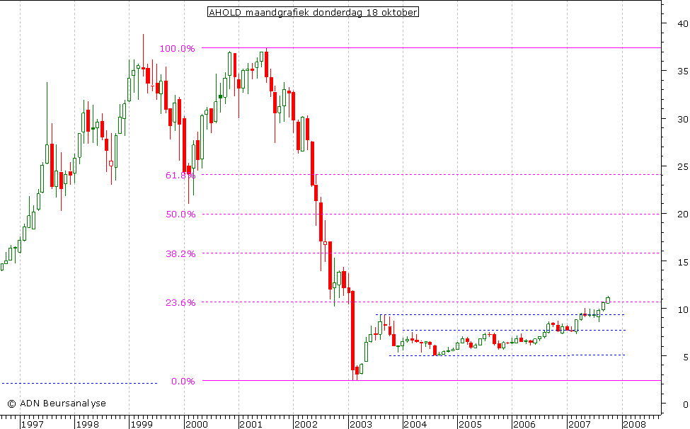 - Ahold noteert momenteel boven het 23,6% Fibonacci