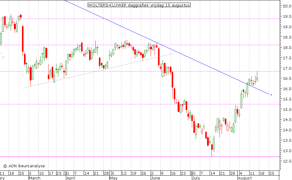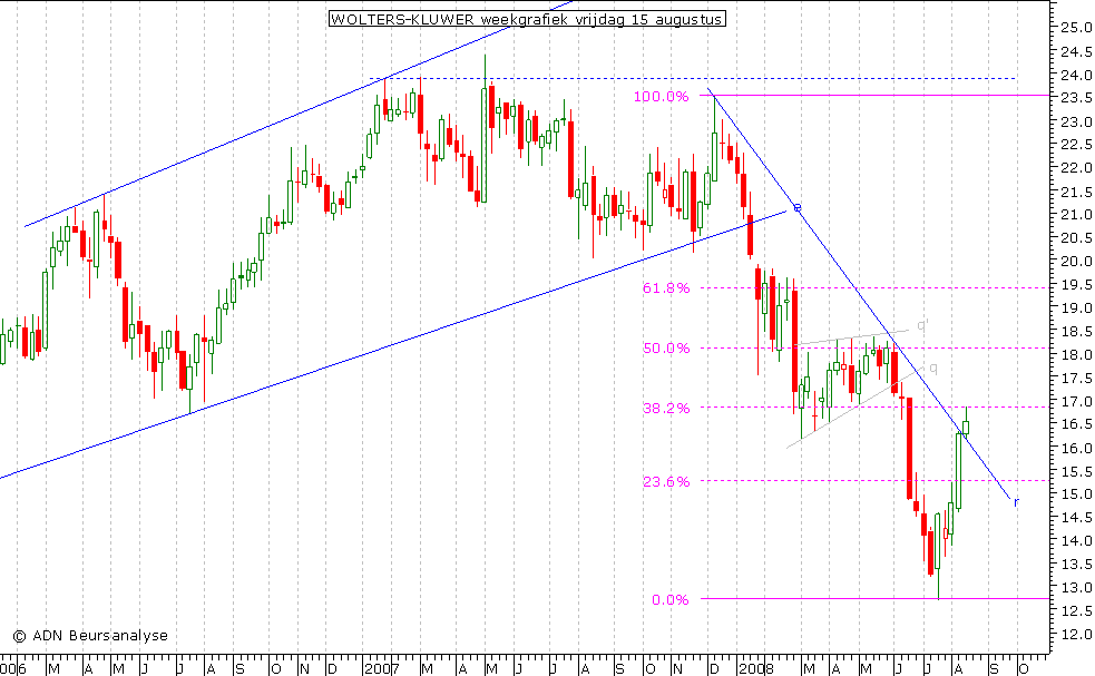 weekgrafiek vinden we drie mogelijke weerstandsniveaus, namelijk 16,80,