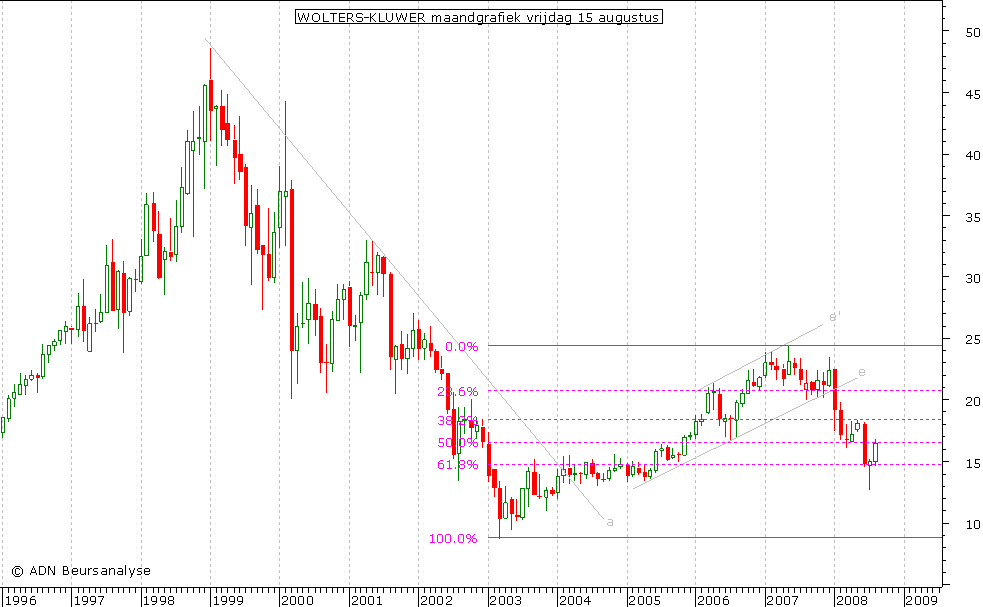 maandgrafiek mijn koersdoel 14,70 bereikt, het 61,8% Fibonacci