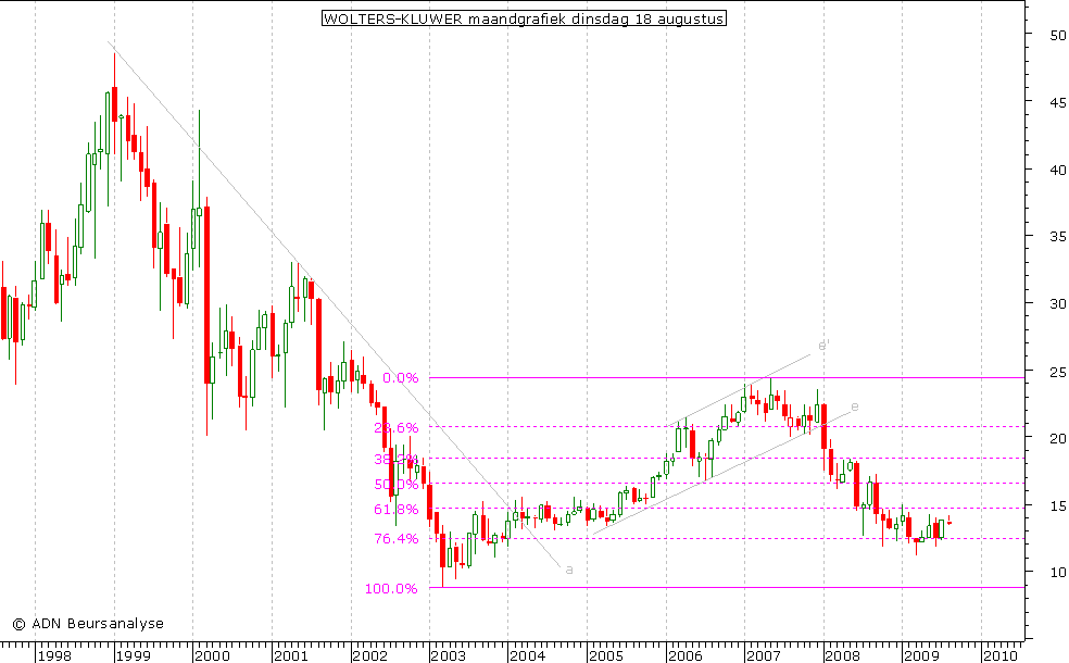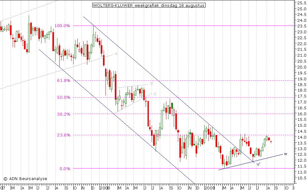 namelijk een stijging naar het 38,2% niveau in de weekgrafiek rond €16