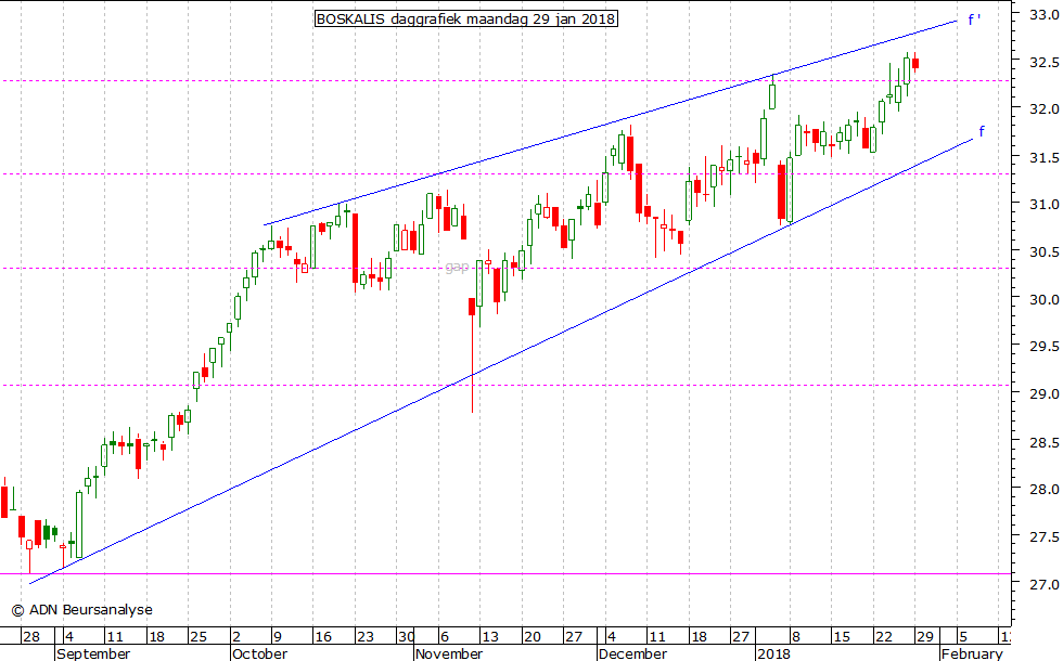 dat het aandeel verder oploopt. De stippellijn rond 28,60 is