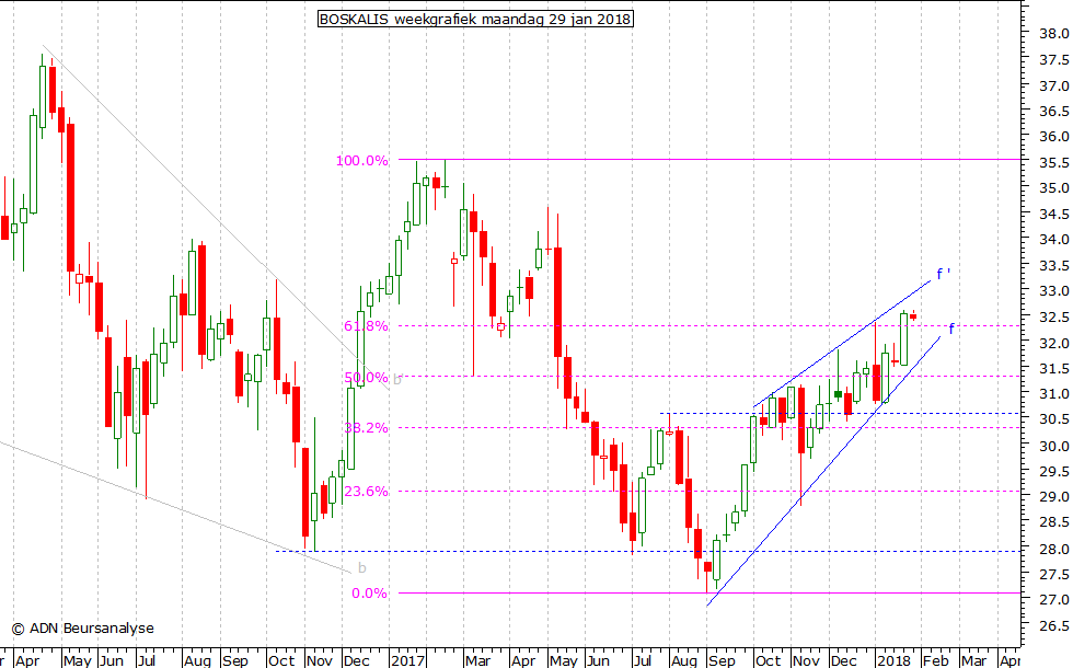 behalve naar 30,45 ook naar 31,70, waar het 50% Fibonacci