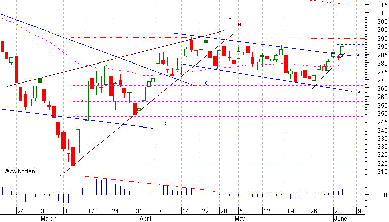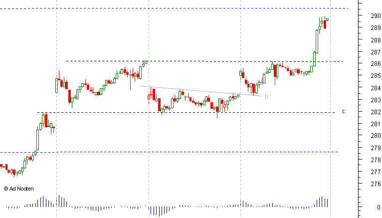 is vrijwel bereikt, we mogen dan eerst een korte daling naar 286,2