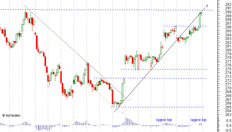 oneindig stomen we op naar boven. Dat is het credo zolang we boven 286,2