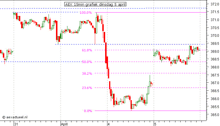 Blijven we onder 369,5 en onder het 61,8% Fibonacci niveau in de 15min