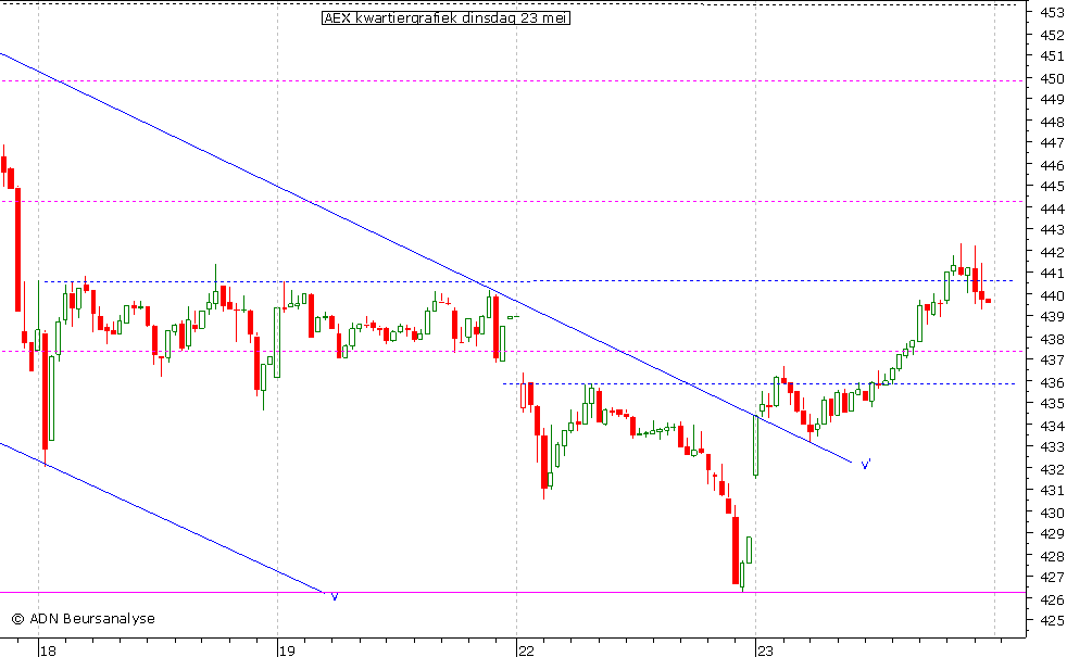 van 15 mei dat nog door middel van een stijging naar 455,1