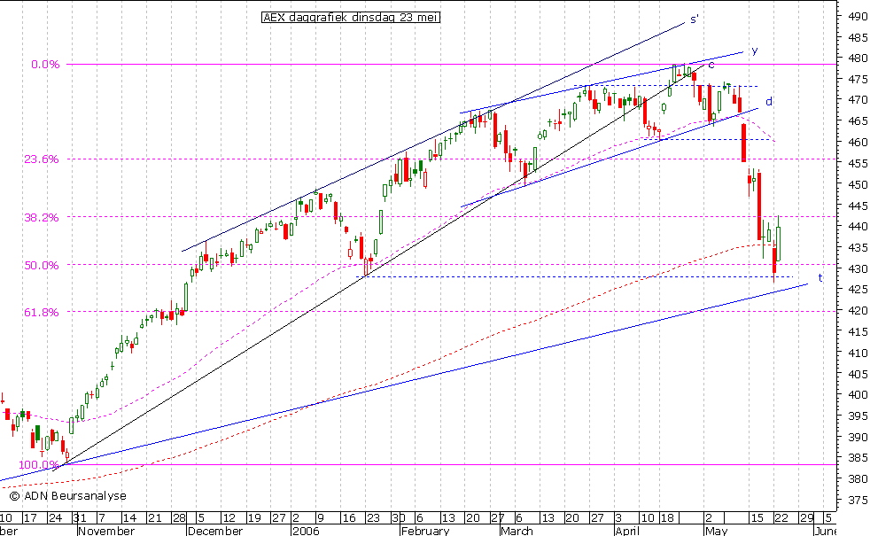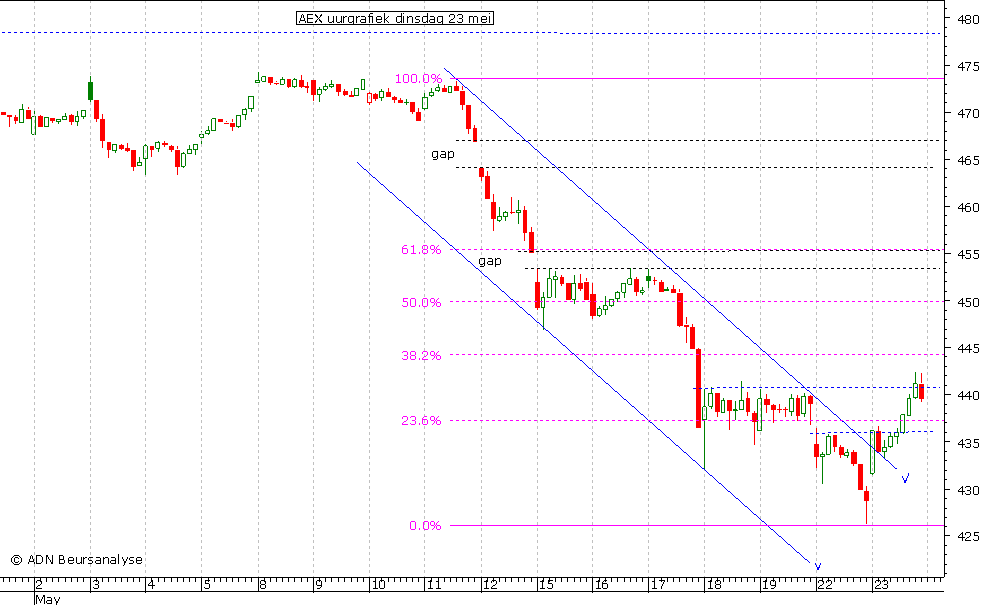 dat net boven het 38,2% niveau op 444,2 lag nam ik dat echter