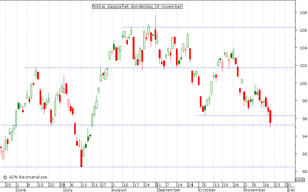 stippellijn rond 9510. Komt de Nikkei daaronder dan