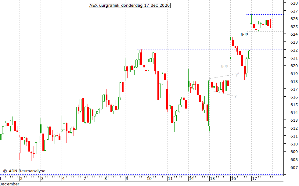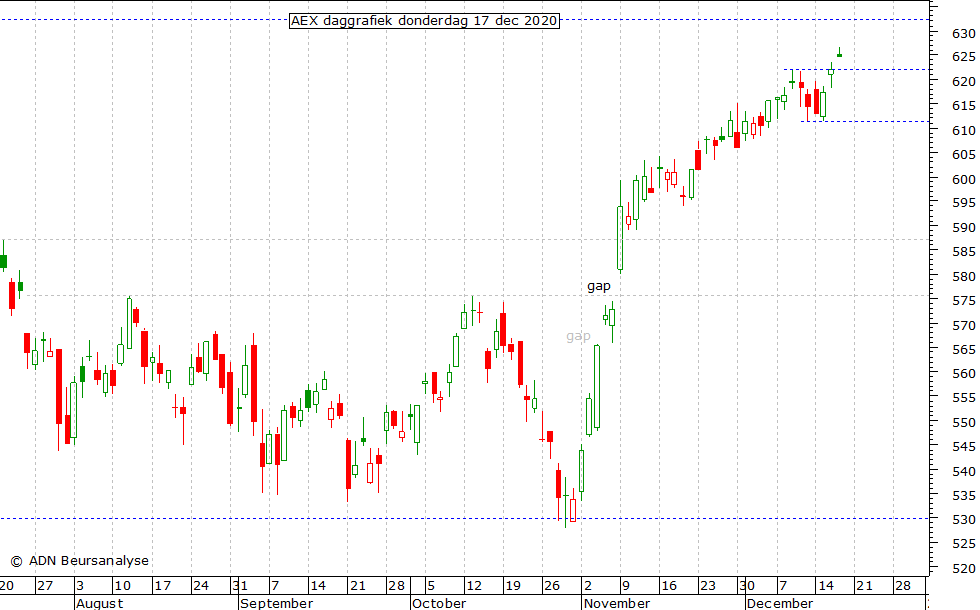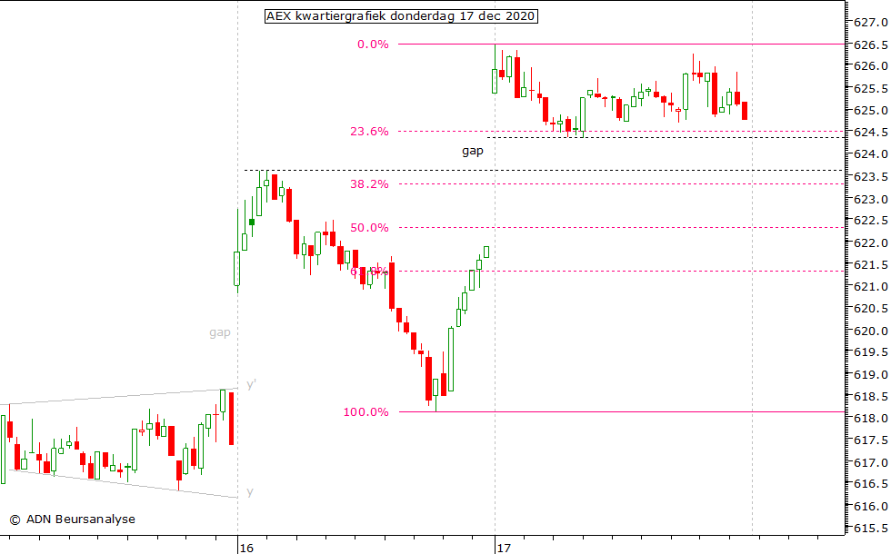 gap gesloten wordt met een terugkeer van de AEX naar 623,6