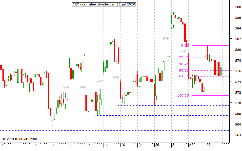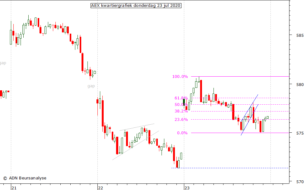 577,2, het 50% niveau rond 577,9 (eventueel samen met de