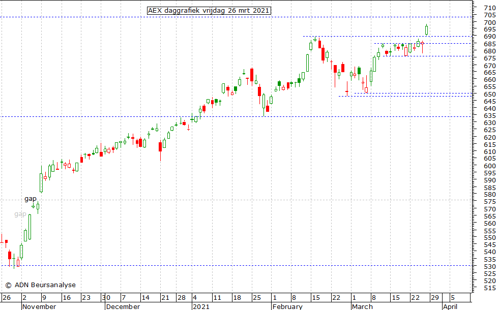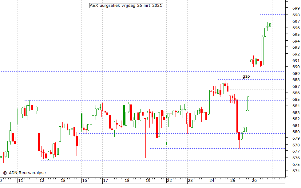 buurt van het hoogste punt van de dag van uit dat de AEX deze afstand