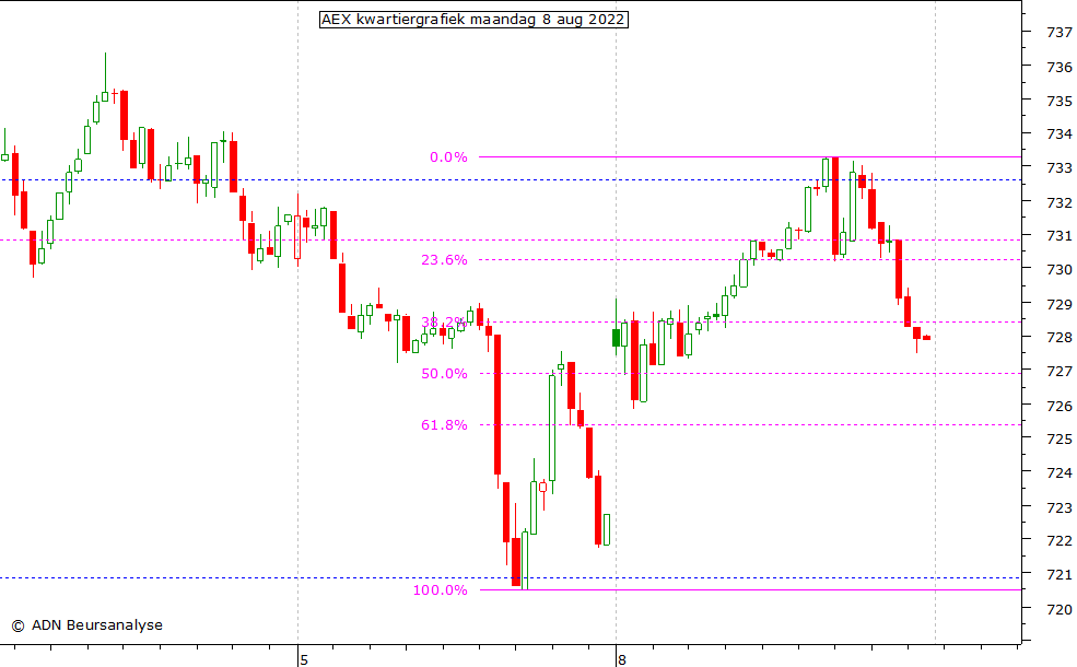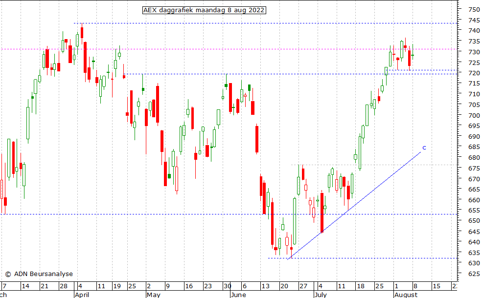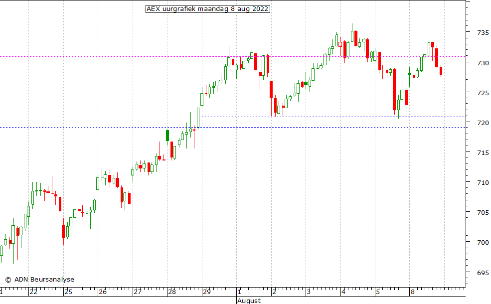 aug 16.00u: AEX index boven top 732,6 geweest