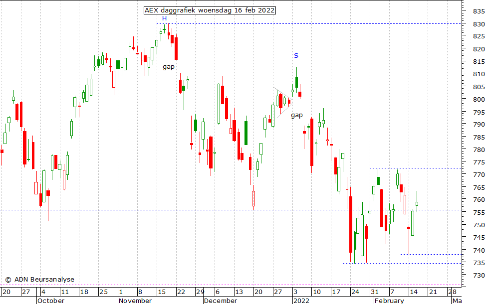 feb 16.00u: Index bij het bekende niveau 755,6