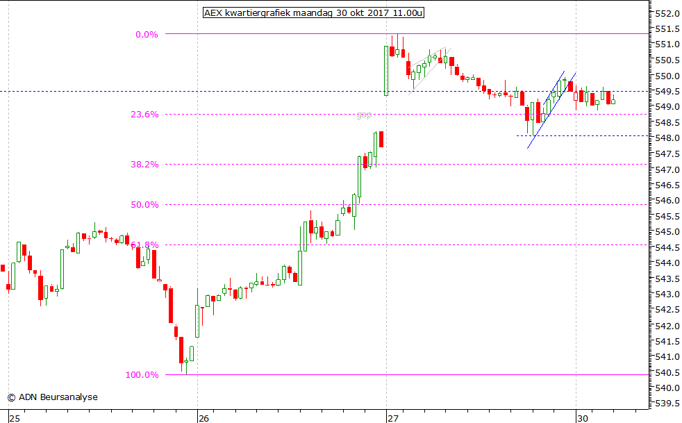 AEX index beweegt nog steeds zijwaarts. De stippellijn rond 549,5 is tot