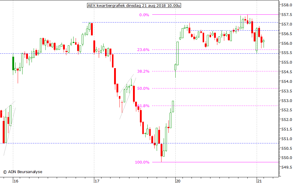afgedwongen. De AEX staat echter nog boven de bodem bij 555,4 en het