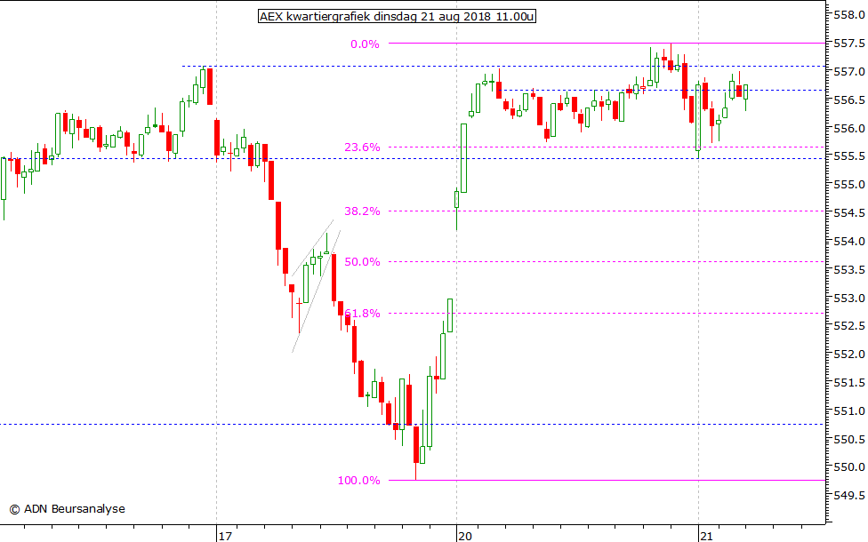houdt in dat de beursindex naar een lijn rond 558,5 uit de daggrafiek in