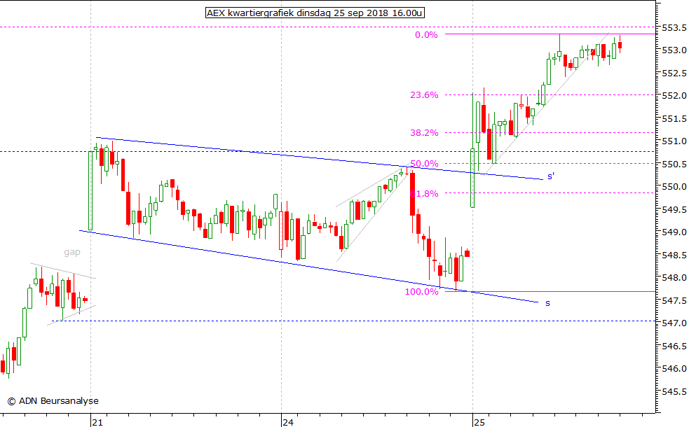 er naar uit dat hier een dubbele top gaat ontstaan. We bereiken 553,5