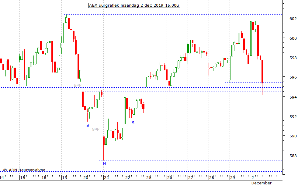 - De AEX heeft de neklijn rond 594,5 van het