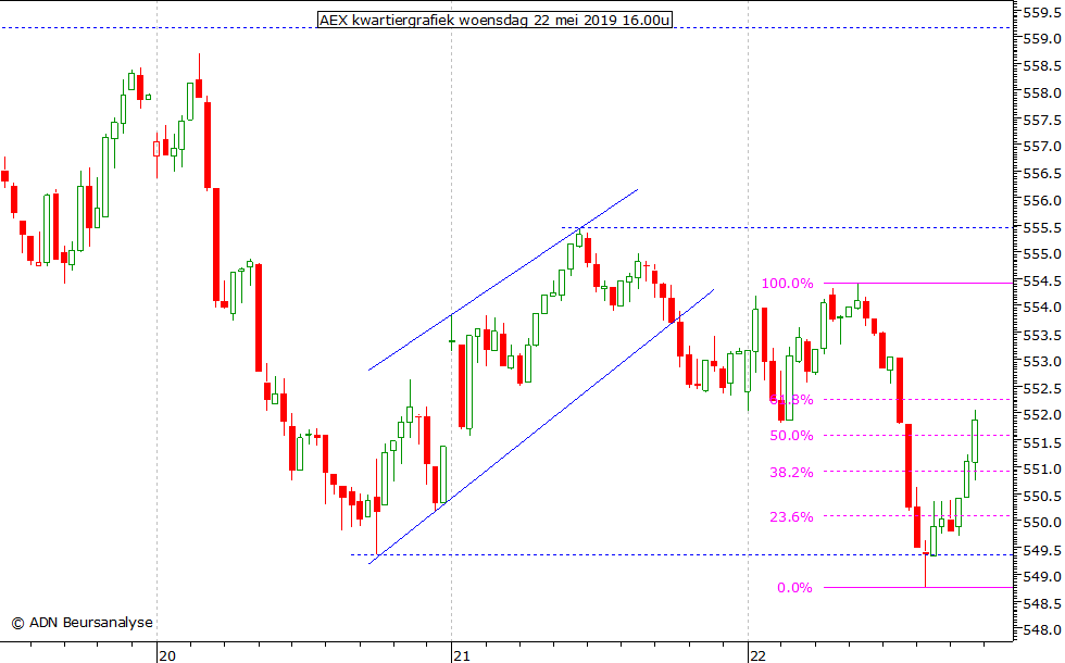 gaten, het 61,8% niveau ligt daar rond 552,9. De graadmeter heeft het