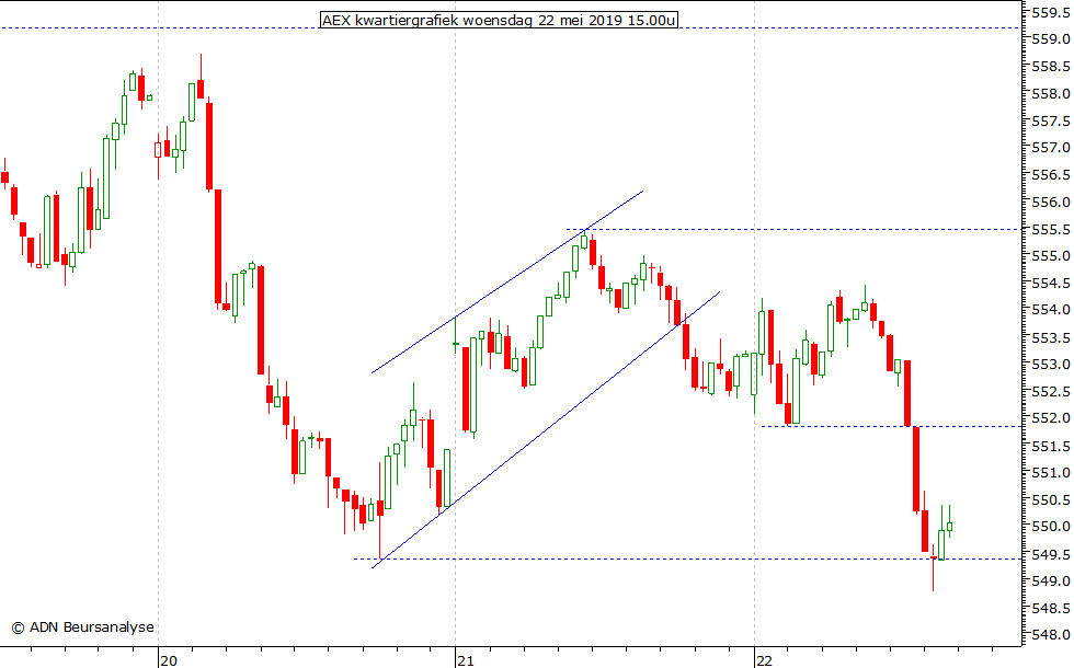 AEX werd het afgelopen uur na een daling onder de bodem rond 549,4 direct