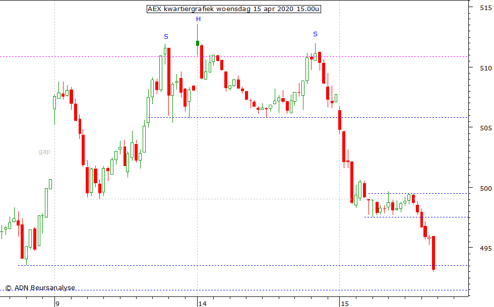 eerstvolgend relevante steunniveau is de stippellijn rond 491,5 door een