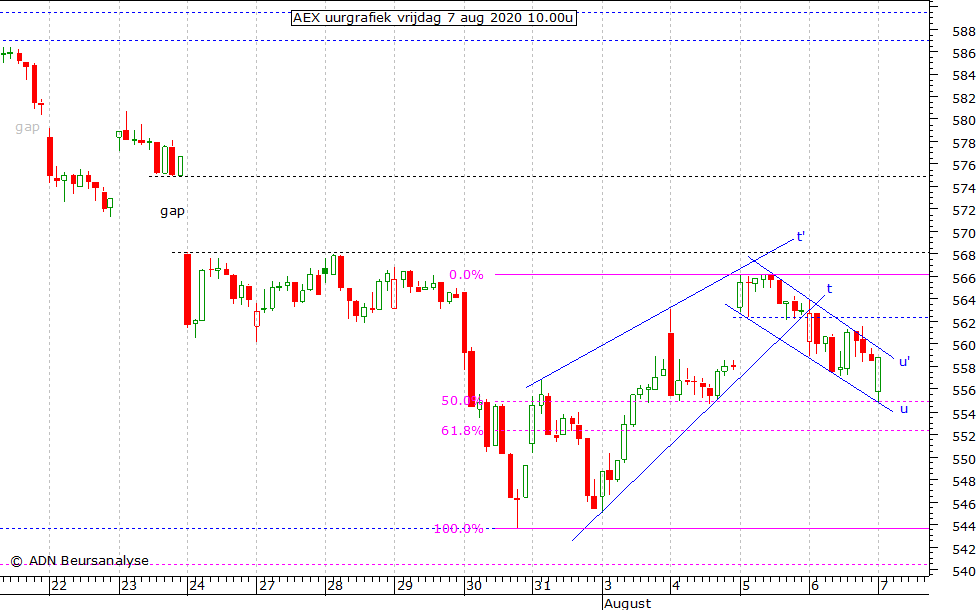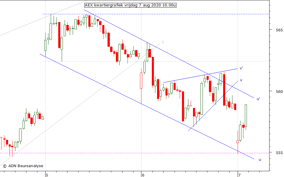 Dit uur bekijk ik of de AEX eventueel naar boven uit de vlag breekt. Een