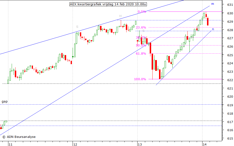 AEX is een korte termijn top tot ontwikkeling gekomen. De beursindex daalt