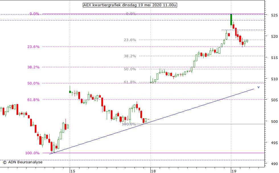 dan volgt de daling naar het grijze 38,2% Fibonacci niveau rond 515,3 of lager. -Ad Nooten-