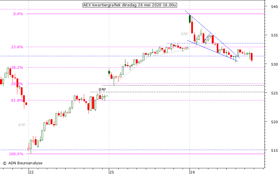 niveaus 529,4 (38,2%), 526,5 (50%) en 523,6 (61,8%). Verder kan er bij de