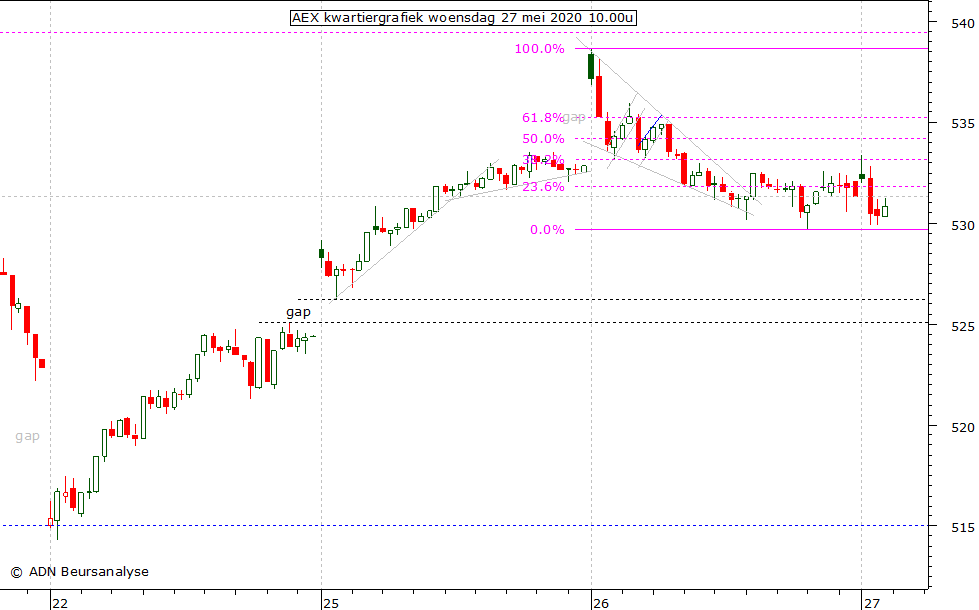 is een korte termijn top geworden. Om tien uur was de bodem van gisteren nog