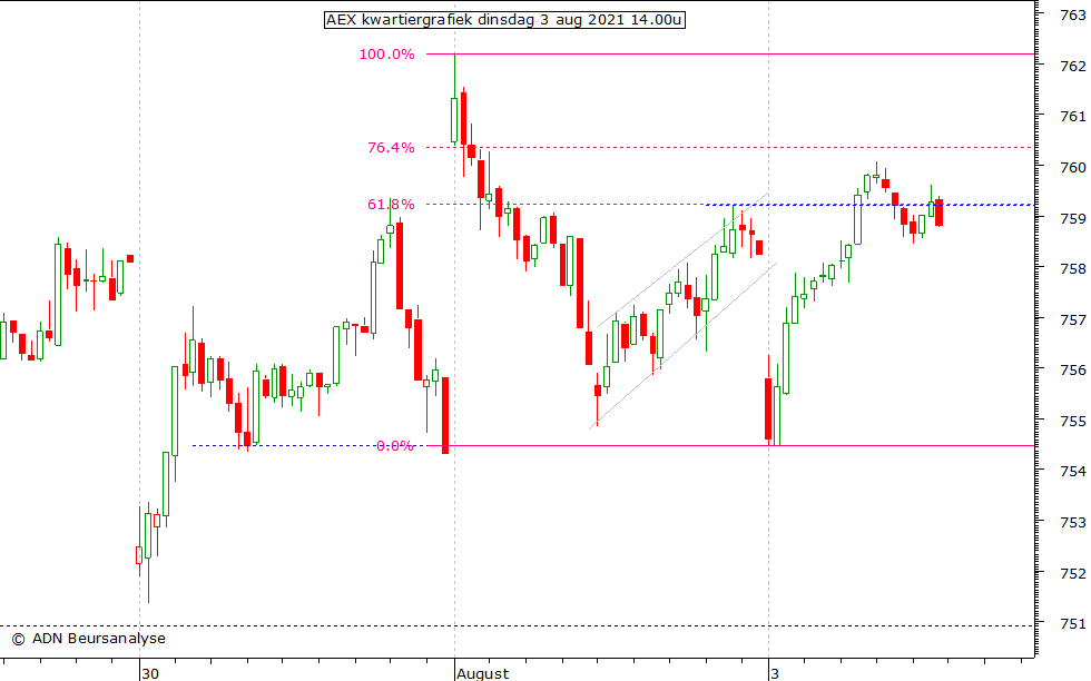 kans zou zien de AEX naar en boven de top rond 762,2 te brengen. Dat is op
