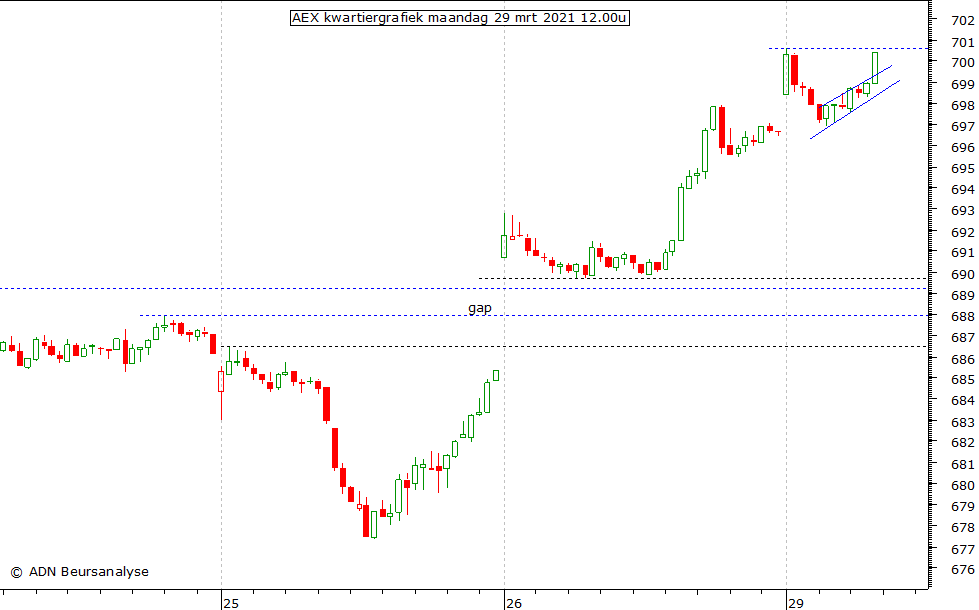 vanmorgen rond 700,6 aangevallen wordt. Komt de AEX boven dit niveau en