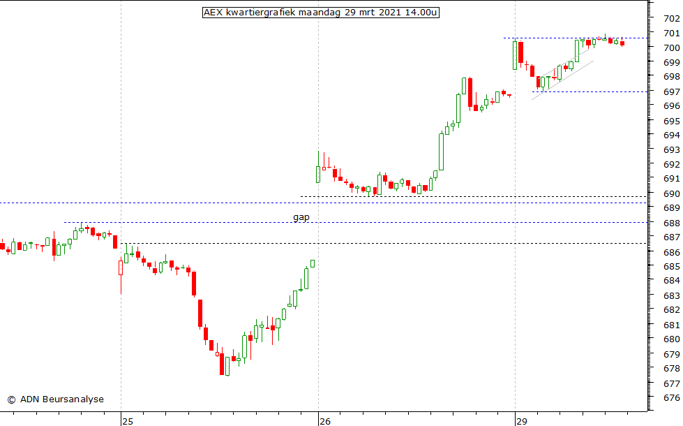 700,6 is niet doorbroken. De AEX is tussen de middag bij dit niveau blijven