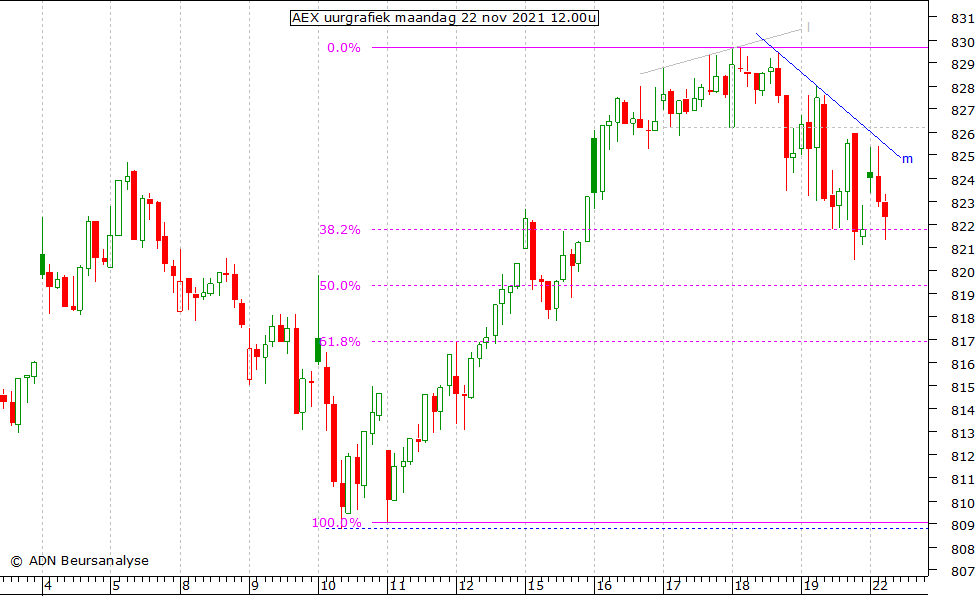 niveau rond 819,4 in deze uurgrafiek of het 61,8% niveau rond 816,9