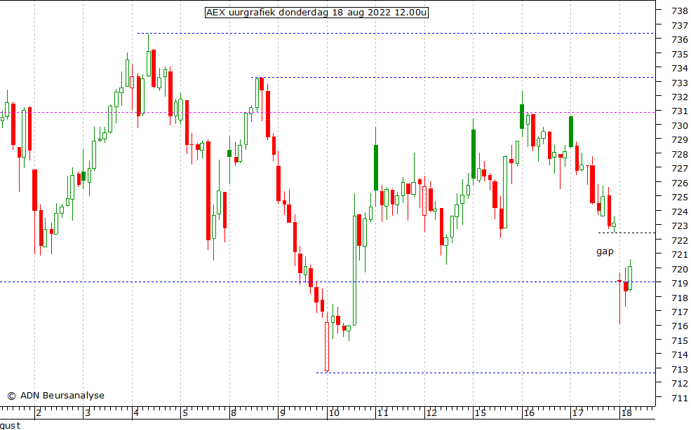gesloten indien het laagste punt van gisteren rond 722,5 wordt bereikt. Er