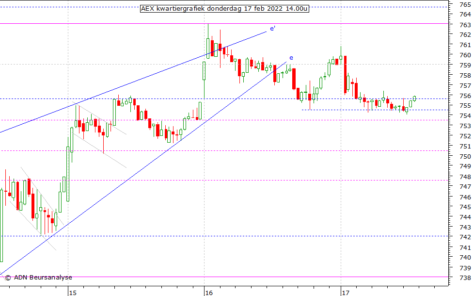 AEX na een daling onder de bodems rond 754,5 op te vangen. De beursindex