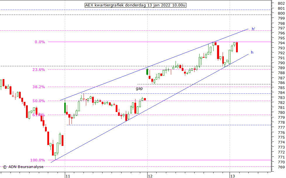 h-h'. Vanmorgen is de AEX index in het eerste uur gestegen binnen dit