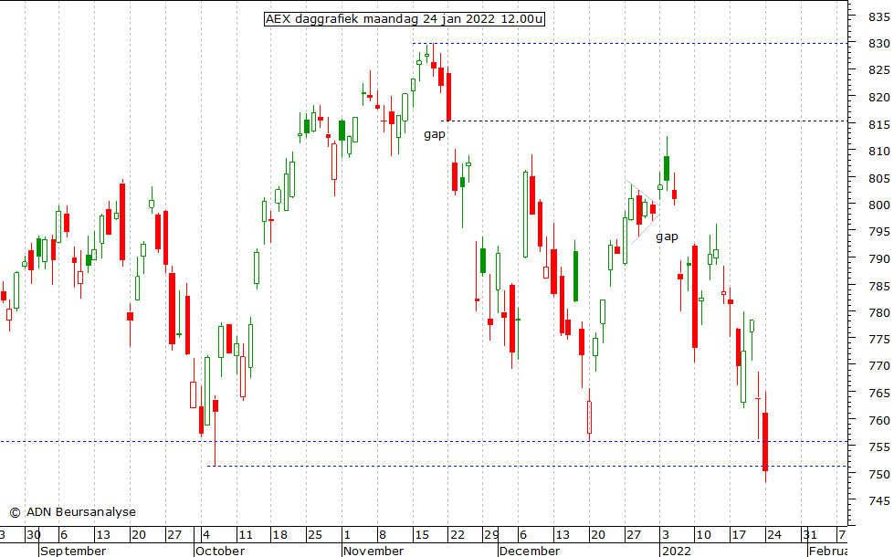 de stippellijn rond 751,1. Eindigen we de dag onder het niveau dan is dat