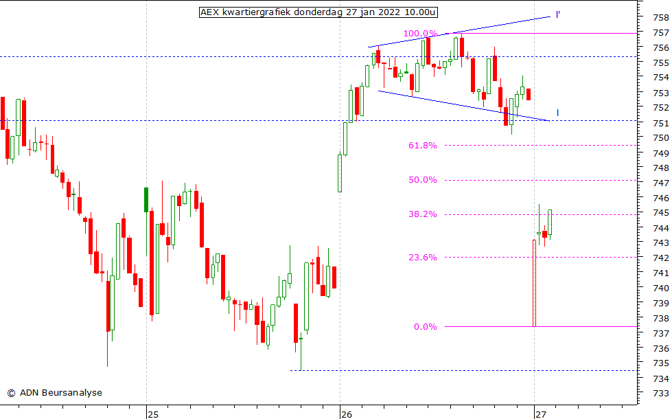 die gisteren in de kwartiergrafiek van de AEX werd ontwikkeld is vanmorgen