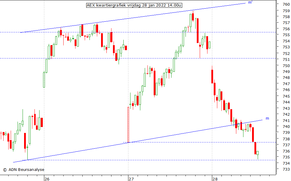 verder en de AEX daarom ook. Het afgelopen kwartier heeft de index de bodem