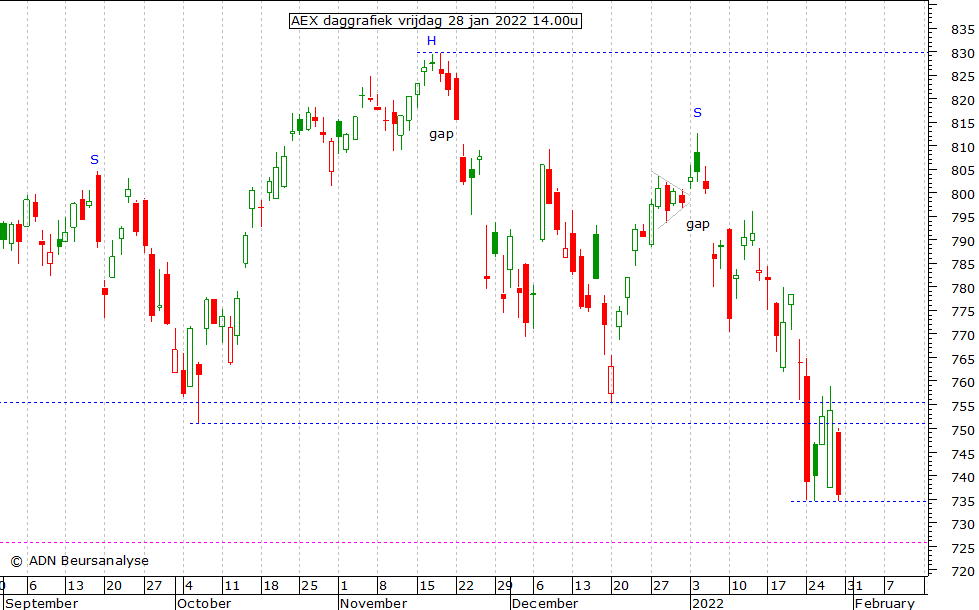 roepen waar de AEX heen kan gaan indien 734,4 blijvend doorbroken zou