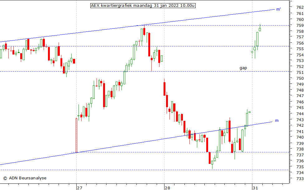 755,6, 758,9 en lijn m', maar ook het koersverloop ten opzichte van dat punt
