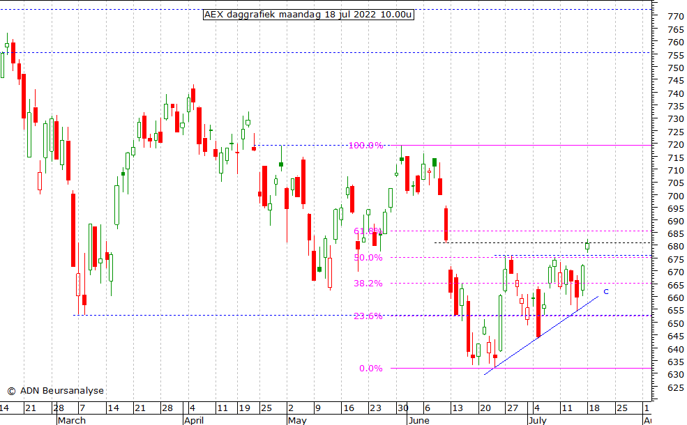 volg of dit eventueel gesloten wordt met een daling van de index naar 672,6