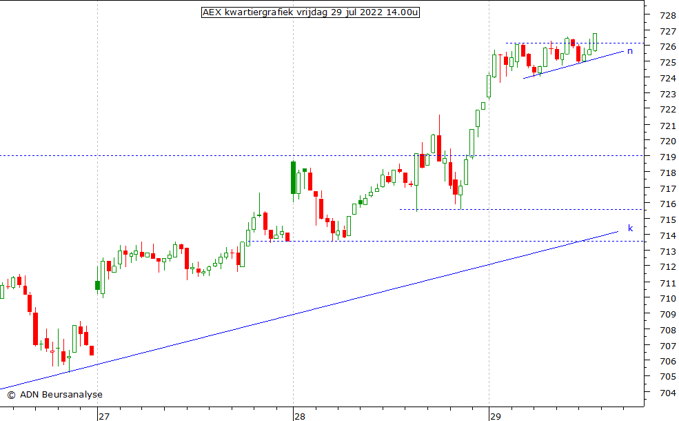 omhoog is in ieder geval intact in de tijd dat de AEX boven deze lijn