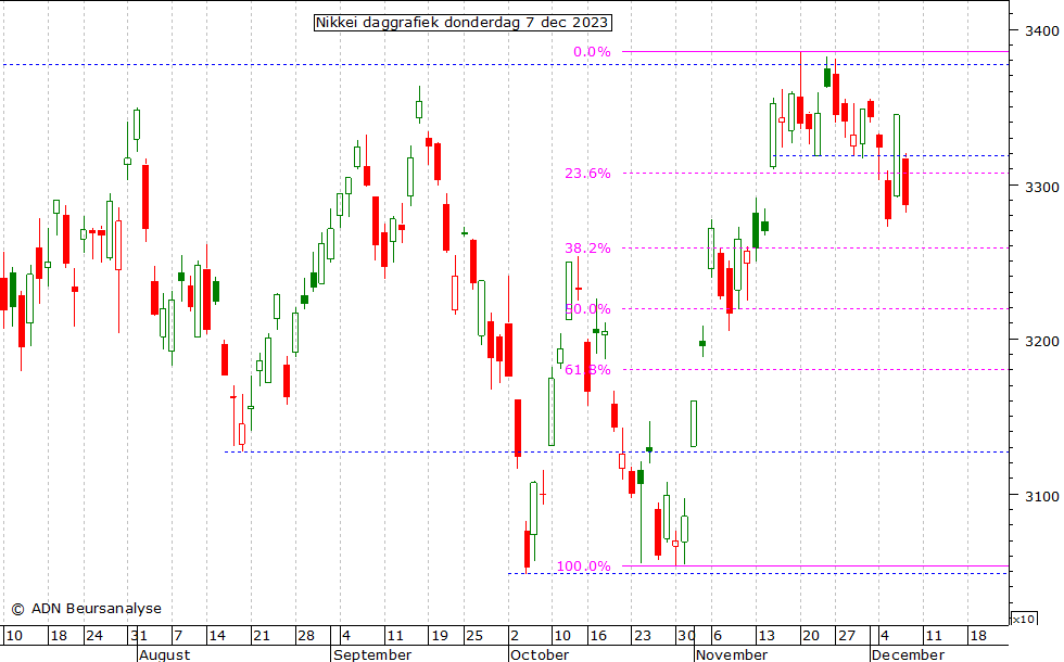 33.180. Vandaag volgde echter weer een daling. De Japanse beurs